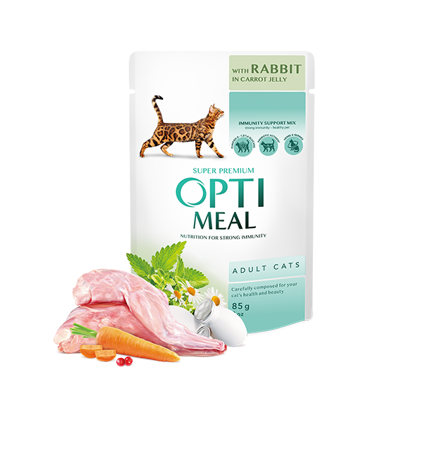 Pirmas klausimas, su kuriuo susiduria bet kurios veislės kačių šeimininkai – kaip maitinti augintinius, kad jie visada būtų sveiki, žaismingi, o kailis žvilgėtų. Super premium klasės maistas Optimeal – tai šiuolaikiškas subalansuotas maistas jūsų pūkuotiems augintiniams. Jis sukurtas naudojant naujausias Šveicarijos technologijas ir iš natūralių ingredientų. Receptai, sukurti geriausių veterinarų dietologų, visiškai atitinka katės organizmo reikalavimus, atsižvelgiant į jos fiziologines ypatybes.